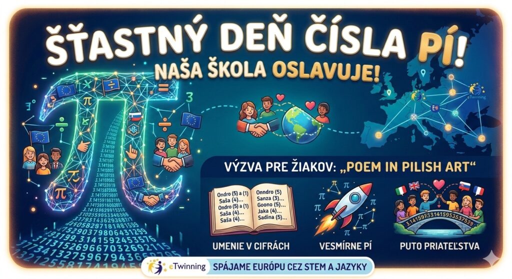 Hoci sme pred pár dňami, 14. marca (3.14), spolu s celým svetom oslávili najznámejšiu matematickú konštantu, dozvuky na našej škole stále trvajú. Prijali sme výzvu eTwinningu a pustili sa do tvorby v štýle „POEM IN PILISH ART“! O čo ide? V texte musí dĺžka každého slova presne zodpovedať cifrám čísla \pi“ (3,14159…). Prvé slovo má 3 písmená, druhé 1, tretie 4… a tak ďalej!Naši žiaci (a dokonca aj niektorí učitelia) sa tejto výzvy zhostili úžasne a v téme STEAM prepojili vedu, umenie a jazyky. Vytvorili diela na dve krásne témy: Vesmírne Pí – nekonečnosť vesmíru v nekonečných ciferách \pi „. Puto priateľstva – básne o spolupráci a spájaní Európy (presne v duchu eTwinningu!).Ako ukážku prikladáme grafický návrh básne „Puto priateľstva“, ktorý krásne ilustruje, ako sa dajú čísla premeniť na silné posolstvo. Ďakujeme za túto inšpiratívnu výzvu, ktorá nám ukázala, že matematika naozaj spája!